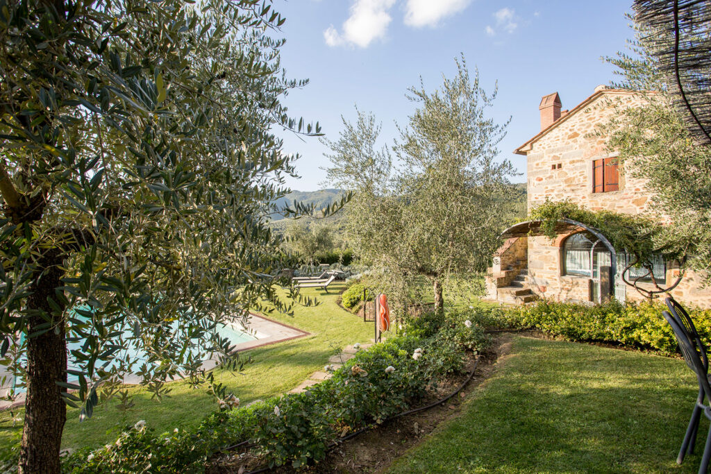 Esimerkkimme huvilan lomahuoneisto sijaitsee Toscanalle tyypillisessä kukkulamaisemissa rauhallisessa 1000-vuotiaassa pikkukylässä noin 400 metrin korkeudella. Huvilassa on tyypillisesti kaksi lomahuoneistoa.