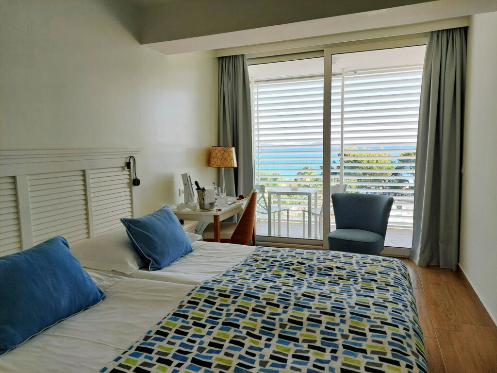 Huoneestasi avautuu kaunis näköala hotellin uima-altaille ja kirkkaansiniselle merelle. Altaita varten voit lainata pyyhkeen hotellikorttia vastaan.