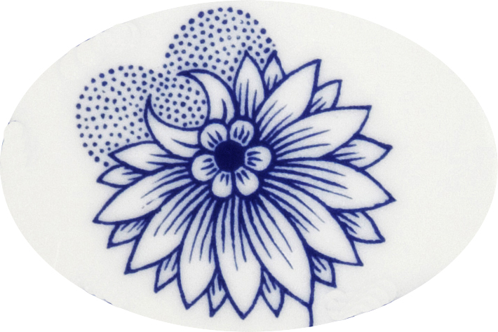 Kuvio muodostuu kukista, lehdistä ja hedelmistä. Keskeiset motiivit ovat asterin kukka, jonka varressa on sen nuppu sekä pionin kukka, joka kietoutuu bambunverson ympäri. Reunaa koristelevat tyylitellyt persikat ja granaattiomenat. Koska granaattiomena oli siihen aikaan tuntematon hedelmä eurooppalaisille, toisin kuin arkisempi sipuli, kuviota ruvettiin maanosassamme virheellisesti kutsumaan sipulikuvioksi: Zwiebelmuster, Blue Onion, cibulák. Nyt on kuitenkin liian myöhäistä oikaista historiallisia väärinkäsityksiä.
