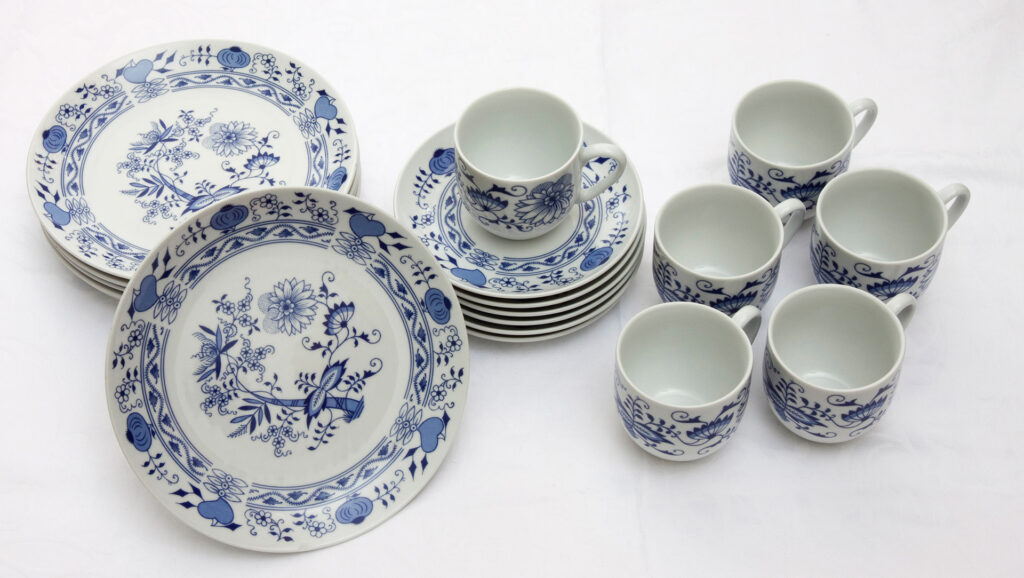 Thun-posliinista valmistettuun kahvisettiin kuuluu 18 osaa: 6 kuppia tilavuudeltaan 0,16 l, 6 aluslautasta halkaisijaltaan 135 mm ja 6 leipälautasta halkaisijaltaan 19 cm. Hinta: 289,91 €
